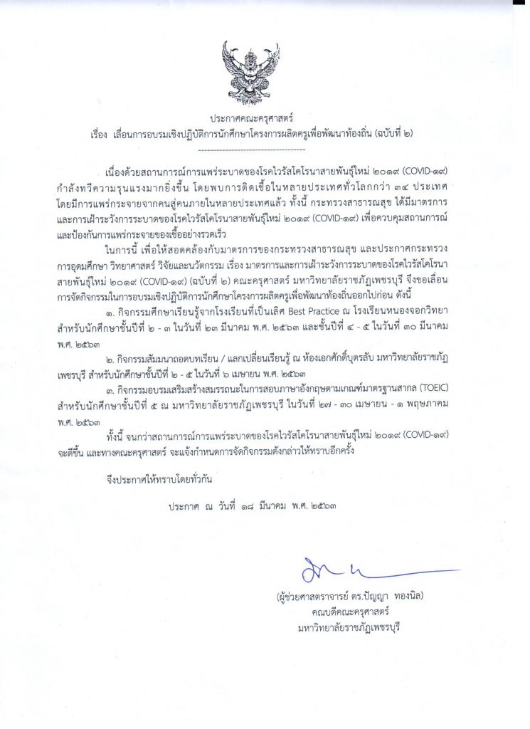 คณบดีคณะครุศาสตร์ นำผู้บริหาร คณาจารย์ บุคลากร และนักศึกษา ร่วมกิจกรรมทำบุญตักบาตร เนื่องในวันราชภัฏ 14 กุมภาพันธ์ เพื่อน้อมรำลึกในพระมหากรุณาธิคุณเป็นล้นพ้นอันหาที่สุดมิได้ ของพระบาทสมเด็จพระบรมชนกาธิเบศร มหาภูมิพลอดุลยเดชมหาราช บรมนาถบพิตร ทรงพระกรุณาโปรดเกล้าฯ พระราชทานชื่อ “สถาบันราชภัฏ” ให้กับวิทยาลัยครูทั่วประเทศ โดยกิจกรรมจัดขึ้นในวันที่ 14 กุมภาพันธ์ พ.ศ. 2563 และกิจกรรมดังกล่าวผู้นำนักศึกษาของคณะครุศาสตร์ได้รางวัลผู้นำนักศึกษายอดเยี่ยม ผู้นำนักศึกษาดีเด่น และผู้นำนักศึกษาดี ดังนี้ รางวัลผู้นำนักศึกษาระดับยอดเยี่ยม ได้แก่ 1. นายพรเทพ เจียระพันธ์ นักศึกษาสาขาวิชาการศึกษาปฐมวัย ตำแหน่ง นายกสโมสรนักศึกษาคณะครุศาสตร์ รางวัลผู้นำนักศึกษาระดับดีเด่น ได้แก่ …