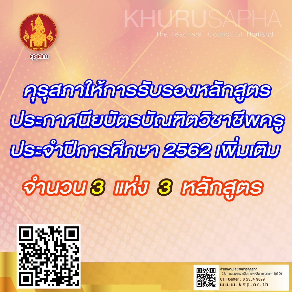 ร่วมตอบแบบสอบถามต่อ (ร่าง)แนวทางการทดสอบเพื่อขอรับใบอนุญาตประกอบวิชาชีพครู คุรุสภาเปิดรับฟังความคิดเห็นแนวทางการทดสอบเพื่อขอรับใบอนุญาตประกอบวิชาชีพครู และการกำหนดมวลสาระการทดสอบและประเมินสมรรถนะตามมาตรฐานวิชาชีพครู ดร.วัฒนาพร ระงับทุกข์ รองเลขาธิการสภาการศึกษา ปฏิบัติหน้าที่เลขาธิการคุรุสภา กล่าวว่าสำนักงานเลขาธิการคุรุสภา ขอเชิญชวนผู้ประกอบวิชาชีพทางการศึกษา สถาบันผลิตครู หน่วยงานต้นสังกัด นิสิตนักศึกษาวิชาชีพครู และผู้มีส่วนได้เสียและผู้มีส่วนเกี่ยวข้องในการจัดการทดสอบเพื่อขอรับใบอนุญาตประกอบวิชาชีพครู ร่วมแสดงความคิดเห็นต่อแนวทางการทดสอบเพื่อขอรับใบอนุญาตประกอบวิชาชีพครู และการกำหนดมวลสาระการทดสอบและประเมินสมรรถนะตามมาตรฐานวิชาชีพครู ระหว่างวันที่ 25 เมษายน 2562 ถึงวันที่ 12 พฤษภาคม 2562 โดยที่พระราชบัญญัติสภาครูและบุคลากรทางการศึกษา พ.ศ. 2546 มาตรา 45 กำหนดให้คุรุสภากำหนดหลักเกณฑ์ …