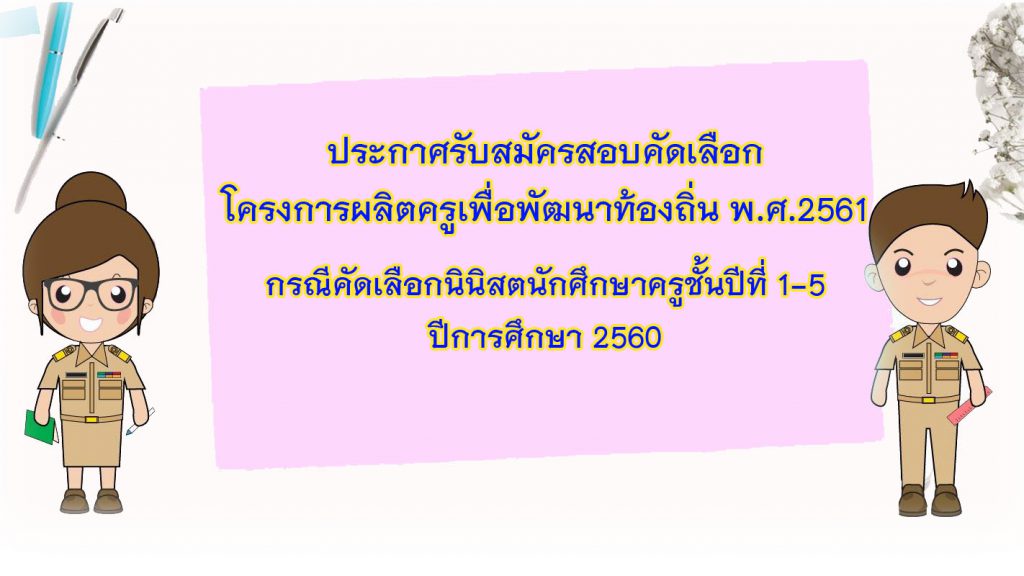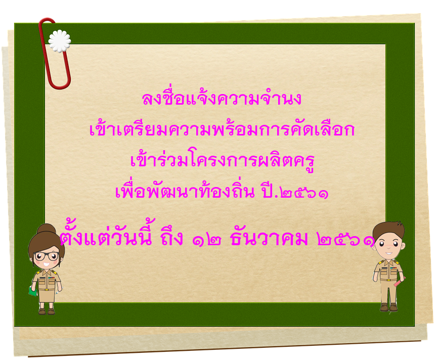 แจ้งความจำนงเตรียมความพร้อมการคัดเลือกเข้าร่วม โครงการผลิตครูเพื่อพัฒนาท้องถิ่น ปี ๒๕๖๑