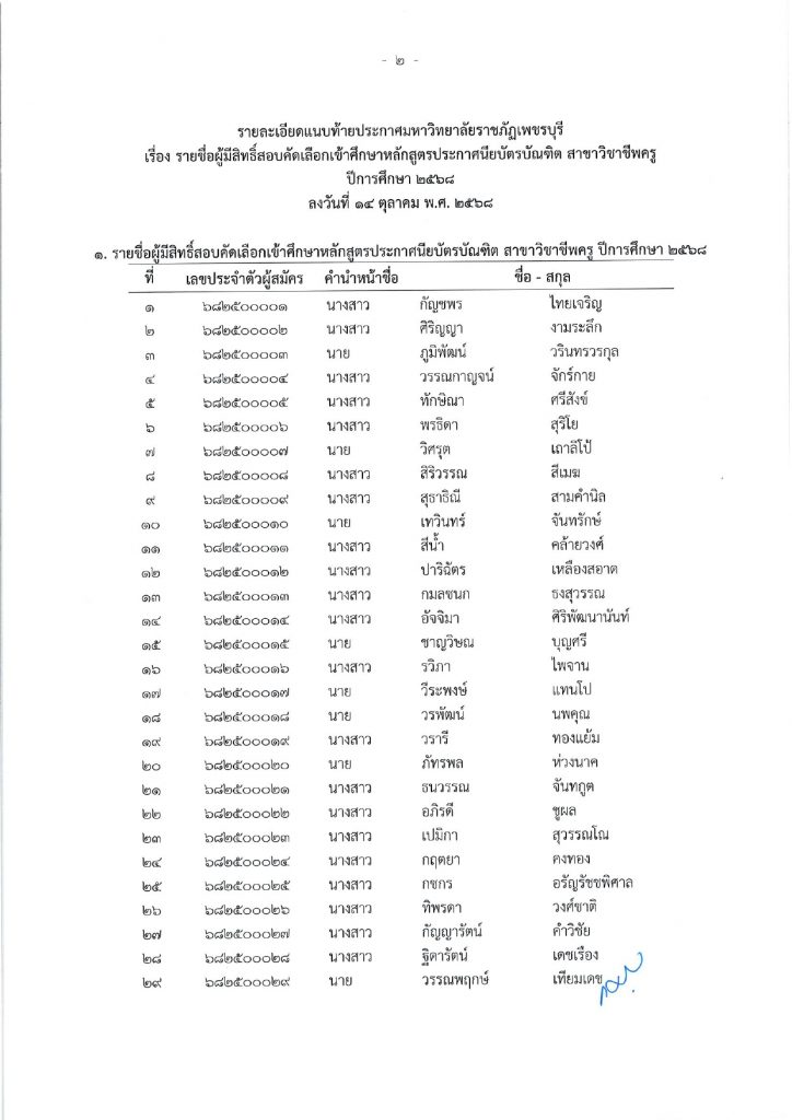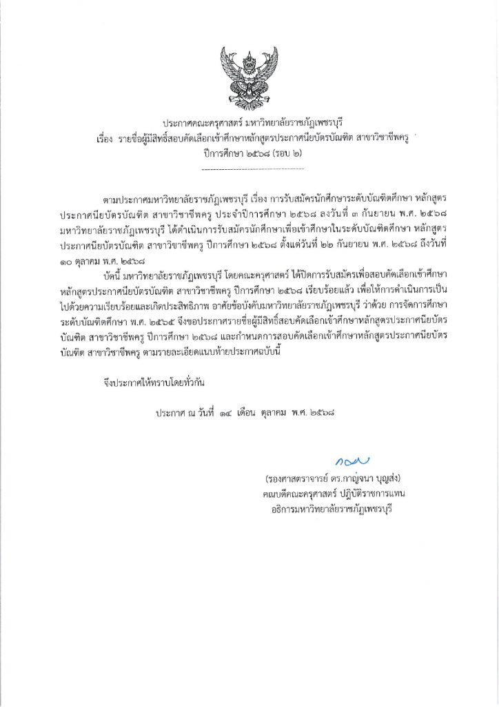ประกาศรายชื่อผู้มีสิทธิ์สอบคัดเลือกเข้าศึกษาหลักสูตรประกาศนียบัตรบัณฑิต สาขาวิชาชีพครู ปีการศึกษา 2568 (รอบ 2)